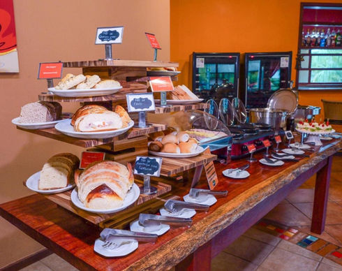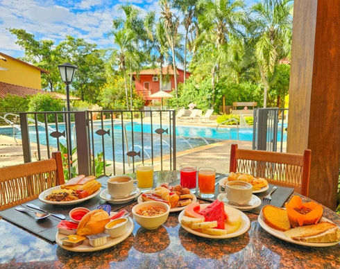 Todas as manhãs a pousada serve um buffet com frutas frescas, sucos, pães, bolos e itens típicos, ideal para renovar as energias antes de sair para os passeios. Muitos hóspedes elogiam a variedade e a qualidade do café, descrevendo-o como excelente começo de dia.